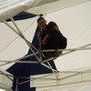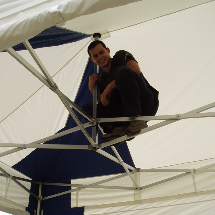 Restaurante de jardin en feria de clásicos. En imagen 2 carpas unidas - Hexágono con 6x3 Industrial.